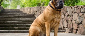 Это мощная, несколько приземистая, собака, с мускулистым телом и массивным, но не слишком тяжелым, костяком. Линия спины наклонена в сторону холки, задние лапы чуть выше передних.