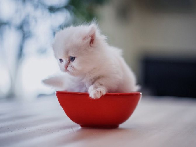 В момент отлучения котенка от материнского молоко важно научить его пить из блюдца.