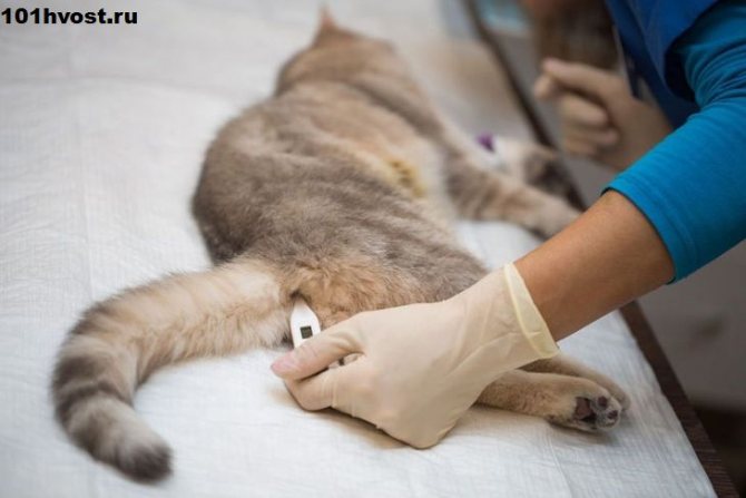 Кошке градусник не ставят под мышку, а вводят в анальное отверстие