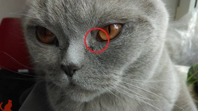 Иногда хозяева котика пытаются копать глубоко в попытках выяснить причину проблемы, а она лежит на поверхности. Кот просто травмировал глаз или туда что-то попало. Присмотритесь, желательно при хорошем дневном освещении. Видите какие-то проблемы на роговице? Если вы видите, что какой-то посторонний предмет (ворс, шерсть, земля) находятся в глазу, ни в коем случае не начинайте выковыривать это пальцем или ваткой: вы можете серьезно травмировать глаз. Тем более что у шотландских кошек глазки выпуклые — нанести травму очень легко. Лучше промойте глаза, чтобы ворс вышел сам.