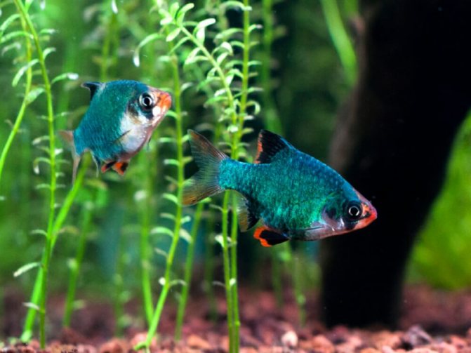- Когда разводят зеленых барбусов, 75% их мальков будут принадлежать к этому виду, а 25% будут обыкновенно окрашенными. Если одна из рыб в паре имеет обычную окраску, то 25-40% их детенышей будут зеленого цвета.