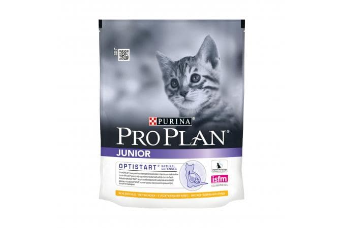 Pro Plan Junior от американской фирмы Purina позиционируется производителем как полноценный рацион премиум-класса для кошек до 1 года. Он имеет сбалансированный состав, направленный на поддержание здоровья питомца в течение длительного времени, укрепляет здоровье кишечника, снижает риск расстройства пищеварения, укрепляет иммунитет, поддерживает формирование костей и мышц, улучшает зрение и мозговую деятельность.