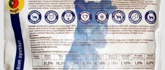 Производитель подробно указал количество и состав соединений минералов, а также дозировку каждого из них, поступающую с кормом. Мы позволили себе немного скорректировать список минеральных добавок и вначале указали именно названия минералов, а в скобках — их источники.