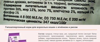 Примерно так же обстоит дело и с изображением свежих ягод клюквы на упаковке. В корме есть экстракт клюквы (№19) — специальный обработанный концентрат, но никаких свежих ягод клюквы сюда не добавляли. Это просто иллюстрация, которую не надо воспринимать буквально.