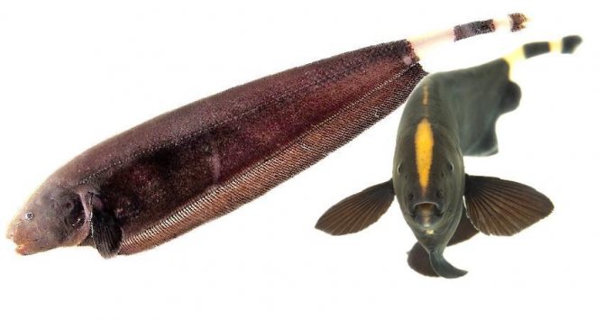 Жировой плавничок может быть нитеобразно вытянут. Анальный плавничок отлично развит у аптеронотуса, тянется от головы рыбы и до хвоста.