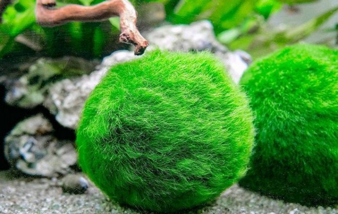 Не смотря на внешнее сходство с мхом, это не мох и вообще не высшее растение, а водоросль. Обычно водоросли нежелательны в аквариумах, но это пушистое милое создание — исключение. Оно не портит растения, стенки и элементы декора. Колония водорослей имеет форму шара, что делает его внешний вид крайне необычным. Вся колония живет на поверхности, внутри из себя шар представляет отмершие части водорослей в виде упругих переплетенных нитей.