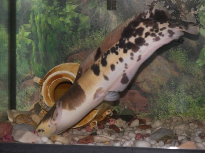 Жить этот обитатель может только с теми рыбами, которые слишком габаритны, чтобы попасть к нему в рацион. Чаще всего компанию мешкожаберным сомам составляют крупные цихлиды, но и со следующими соседями они могут неплохо ладить: