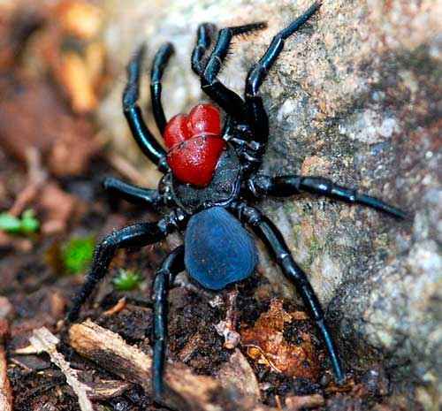 Это один из опаснейших представителей своего рода. Отличительный признак Австралийского убийцы — красная полоска вдоль чёрного тельца. Самка в длину не вырастает больше 1 см, но это тот случай, когда размер не имеет значения. Яд красноспинного паука настолько токсичен, что позволяет с легкостью расправляться даже с ядовитыми змеями.