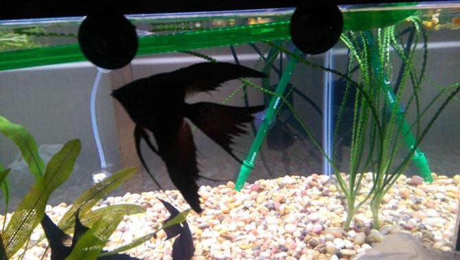 - Аэрация – ангелы предпочитают насыщенную кислородом воду, поэтому аэратор должен работать два раза в день по 40 минут. В противном случае у рыб возникает кислородное голодание, а состояние ухудшается.