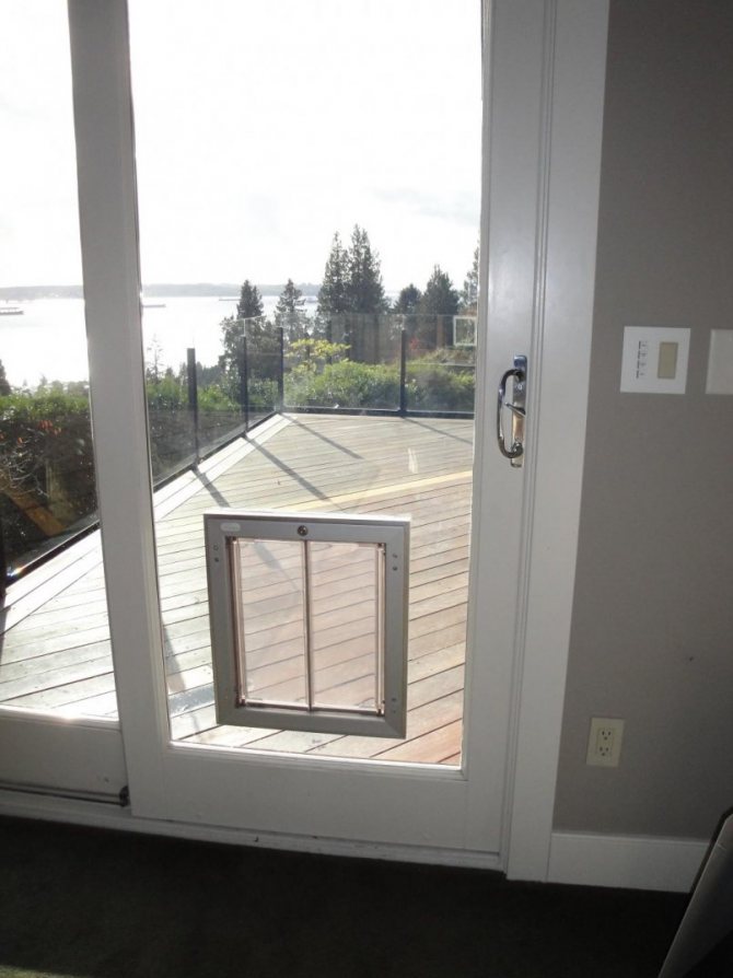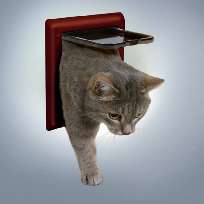 - назначение прохода – створку устанавливают только для того, чтобы кошка могла совершить туалет, но и для того, чтобы животное могло свободно перемещаться из комнаты в комнату, выходить на лоджию и так далее;