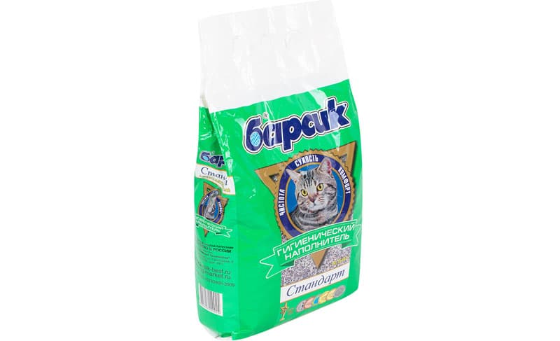 Эта марка также представляет отечественного производителя. Выпускается в трех вариантах: древесный, силикагелевый и минеральный – на основе глины. Особенно хвалят покупатели минеральный комкующийся вид. Он хорошо поглощает влагу, не позволяя жидкости дойти до дна лотка, не крошится, не пылит и не содержит вредных примесей. Объем упаковок, как правило, небольшой, что очень удобно для семей, где живет одна кошка.