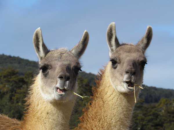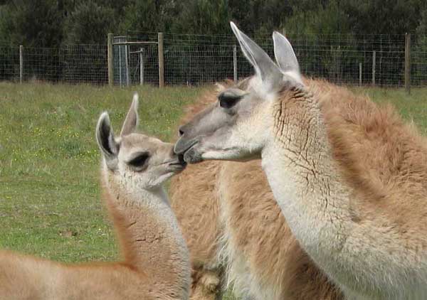 На землю ложатся, как верблюды, опускаясь сначала на колени, потом – на грудь. Гуанако очень осторожны. Самец сторожит все стадо, пока оно пасется.