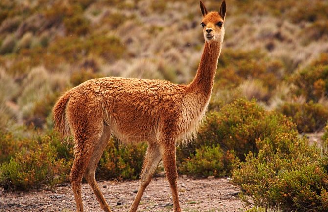 К родственникам лам можно отнести викунью – животное проживающее на территории Чили, Перу, Аргентины и Боливии. Зверь внешне похож на ламу, но имеет более тонкую шею, а его задние конечности существенно длиннее передних. Животное вырастает до 160 см в длину, а его вес не превышает 50 кг. Главной особенностью викуньи считается наличие нижних резцов, которые стачиваются и растут на протяжении всей жизни.