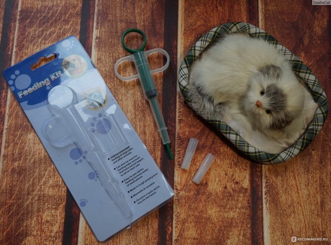 Скормить таблетку кошке можно с помощью пиллера (специальное приспособление для ввода лекарства). Внешне прибор напоминает шприц с резиновым наконечником, куда вставляется таблетка.
