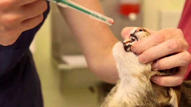 - Открыв коту рот поместить как можно ближе к корню языка наконечник с лекарством.