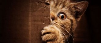 Опущенный хвост – признак того, что животно чем-то сильно напугано. Причиной может стать все, что угодно: внезапный резкий звук, упавшая игрушка или распахнутая с шумом дверь. А поскольку кошки – животные весьма любопытные и довольно часто попадают в различные курьезные ситуации, такое положение хвоста для них – обычное дело.