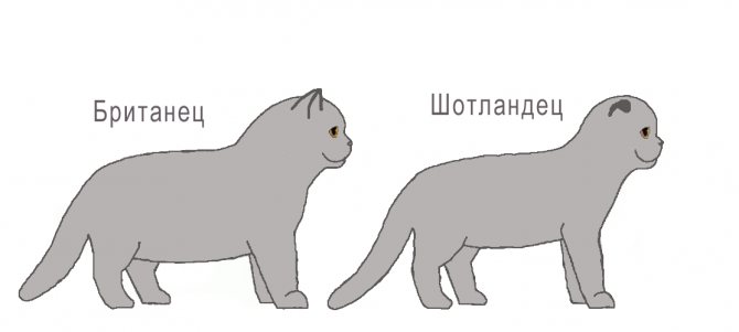 На первый взгляд, кажется, что британцев и шотландцев отличить легко, ведь у одних прямые ушки, а у других – загнутые вперёд, отчего породу и называют шотландской вислоухой (скоттиш фолд). Но подвох в том, что в помётах скоттишей обязательно рождаются и прямоухие котята, так как скрещивание двух вислоухих кошек несёт большой генетический риск.